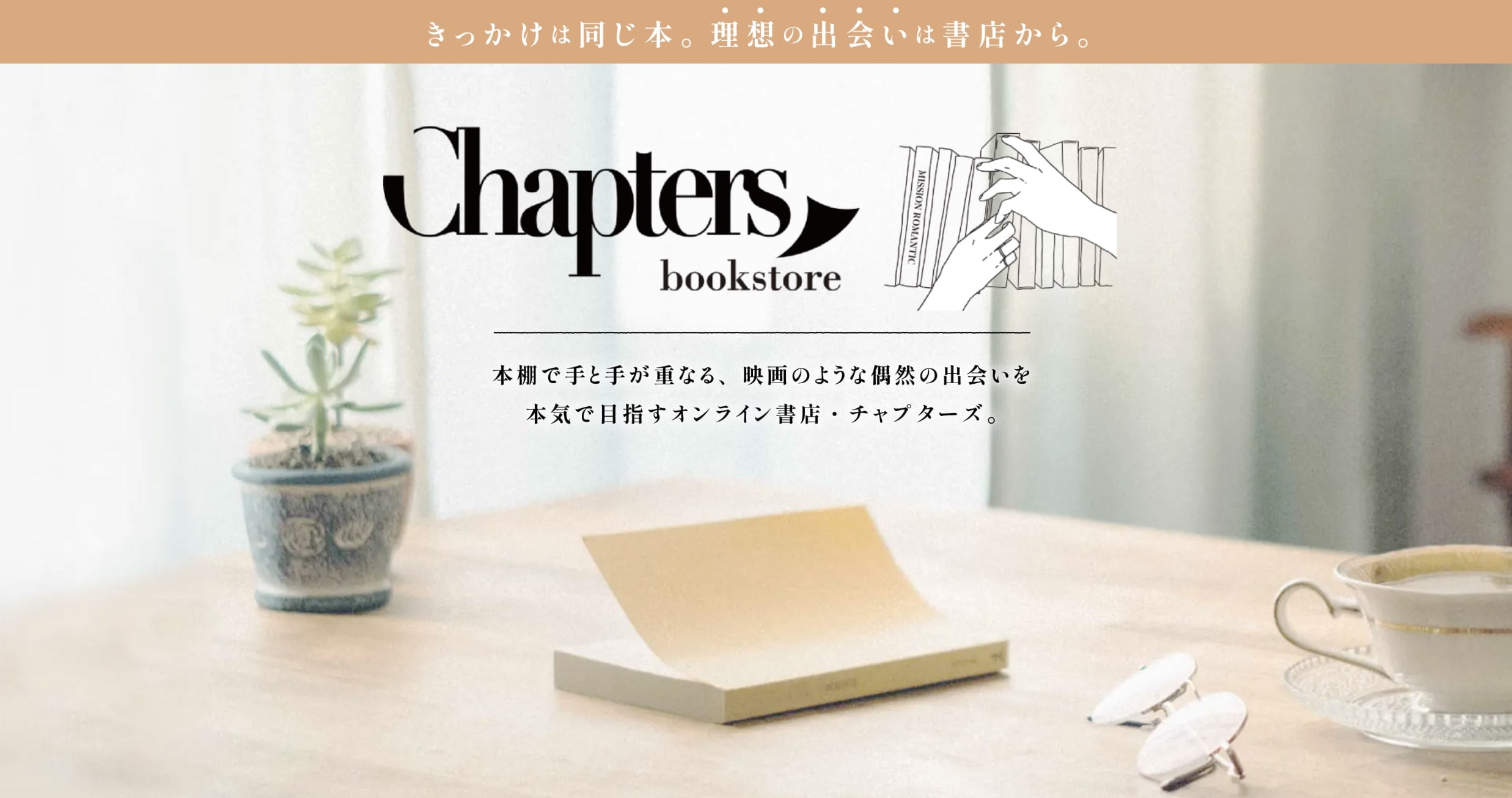 株式会社MISSION ROMANTICは、「本棚で手と手が重なるような出会い」をコンセプトとし、チャプターズを運営中です。