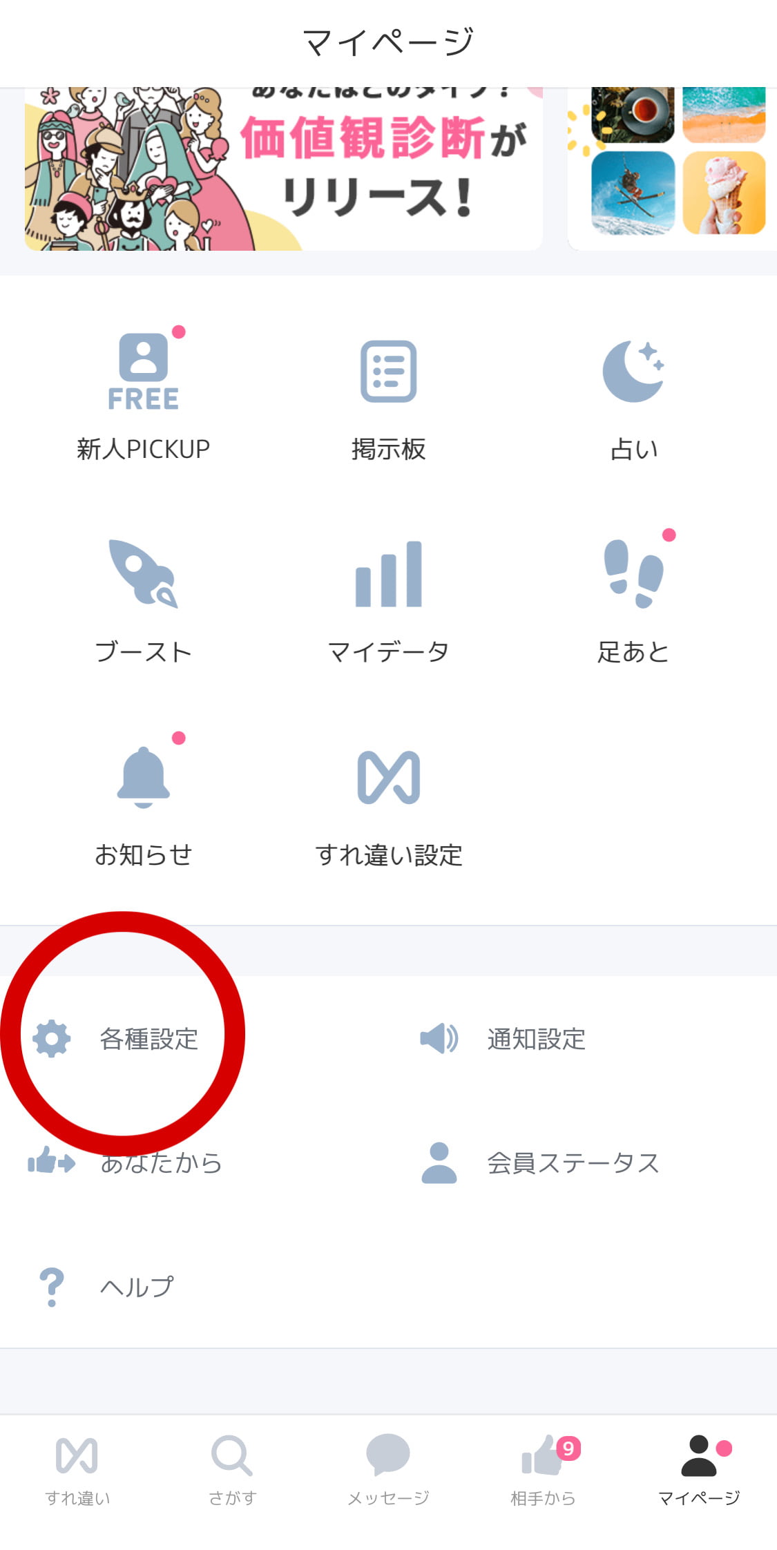 A 各種設定から退会ページに行けばすぐに退会可能。