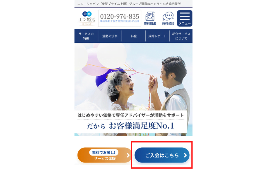 エン婚活エージェントの登録方法①公式HPへアクセス