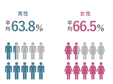 男性は63.8%、女性は66.5%が婚姻歴のある人でした。