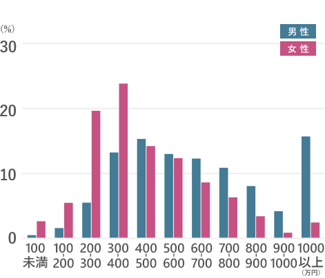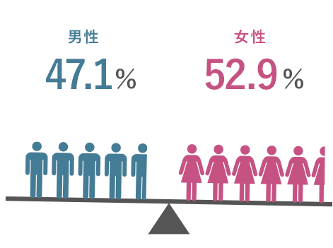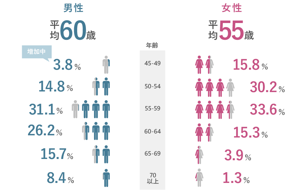2番目に多い年齢層が男女に差がみられ、男性の方が平均年齢が少し高い結果に。